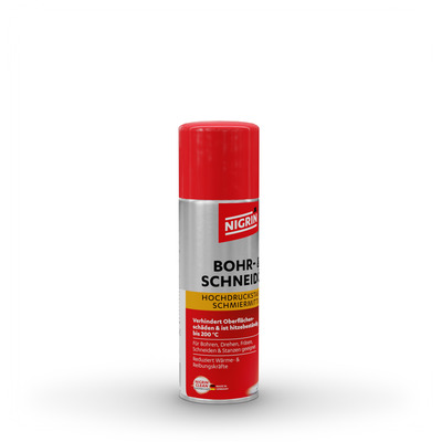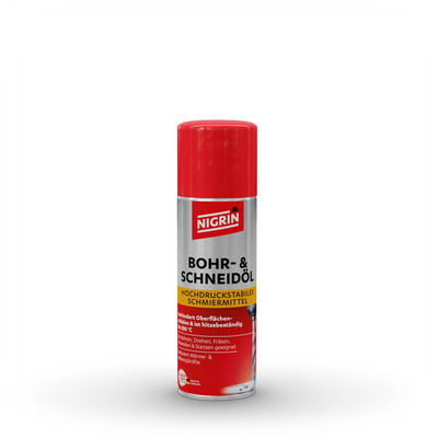 Das NIGRIN Bohr- und Schneidöl ist ein speziell entwickeltes Hochleistungs-Schmieröl für die metallverarbeitende Bearbeitung wie Bohren, Gewindeschneiden, Fräsen, Drehen oder Sägen. Es reduziert Reibung und Hitzeentwicklung an der Werkzeugschneide, verbessert die Schnittqualität und verlängert die Standzeit von Werkzeugen und Maschinen.