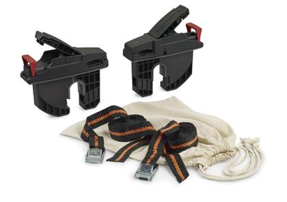 Zwei im Lieferumfang enthaltene Spanngurte ermöglichen eine sichere Transportbefestigung der verstauten Ware.