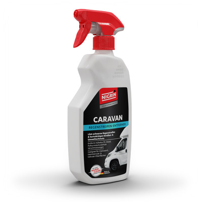 Der NIGRIN Caravan Regenstreifen-Entferner wurde speziell für die schonende und gründliche Reinigung von lackierten, folierten oder beschichteten Außenflächen an Caravans und Wohnmobilen entwickelt. Er entfernt zuverlässig Regenstreifen, Ruß, Ölfilme und andere hartnäckige Verschmutzungen, die sich insbesondere an senkrechten Flächen ablagern.